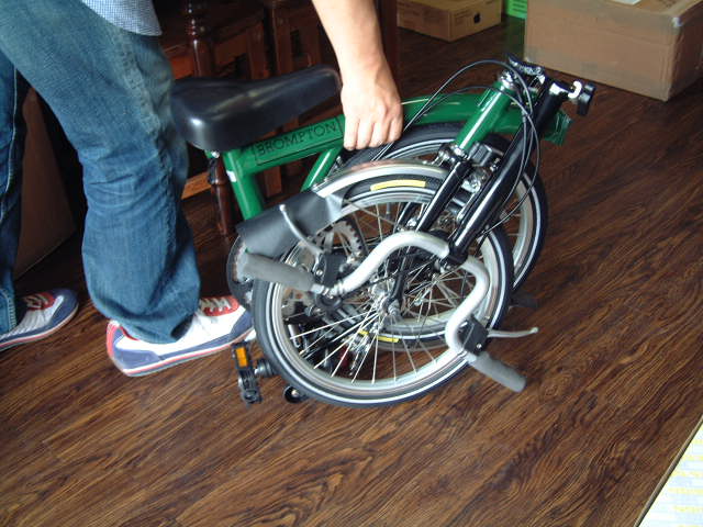 8月10日 (日) BROMPTON 本日 晴れ Mさんに御注文頂いていましたBRONPUTON M3L ブリティシュグリーン、本日納車になりました。 スペックは下記の通りです。 ・frame クロモリ&スチール ・gear 3スピード ・rim 16インチアルミ ・weight 11.5kg おやじの感想 リアタイヤがたたまれているのを見た時には組み立てが大変かなと思いましたが、実際にやってみると全くそんな事はなくすぐに組上げ完了、折れ曲がる部分はクランプタイプでしっかり固定するようになっていて安心感があります。 リフレクターのデザインとタイヤのパターンはイギリス製ならでは! 走らせてみると変速はすこぶるスムースで楽にスピードに乗ることが出来ました。 子供の頃、自転車を走らせる事が楽しくてしょうがなかった頃を思い出させてくれ、笑顔にさせてくれる1台です!! 英車好きには、たまらないアイテムだと思います。 |